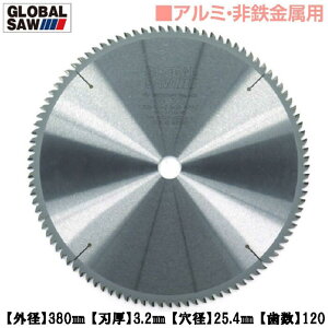 【アルミ・銅など非鉄金属の厚物切断に最適】 商品情報メーカーモトユキ品番GB-380-120仕様・スペック【外径(mm)】380【刃厚(mm)】3.2【本体厚(mm)】2.5【穴径(mm)】25.4【歯数】120【最高回転速度(min...