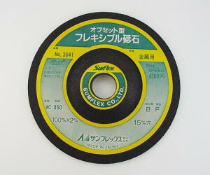 ●ディスクグラインダーに取付け研削加工をするオフセット型砥石です。●各種金属の研削に使用します。●外径(mm):100●厚み(mm):2●穴径(mm):15●砥材:AC材●粒度:#60●最大許容回転数(min-1):13,000