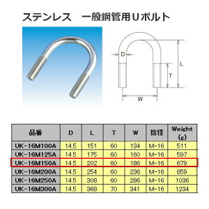 ●U字型金具の代表的な製品で、配管支持金具のスタンダード品です。●ステンレス製なので、錆びにくく美しいです。●配管用鋼管の固定、締め付けに使用。●ねじ径:M16●D(mm):14.5●L(mm):308●W(mm):286●T(mm)...
