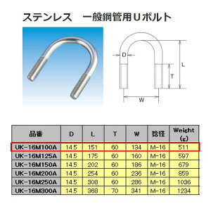 ・U字型金具の代表的な製品で、配管支持金具のスタンダード品です。・ステンレス製なので、錆びにくく美しいです。・配管用鋼管の固定、締め付けに使用。・ねじ径:M12・D(mm):10.72・L(mm):150・T(mm):45・W(mm)...