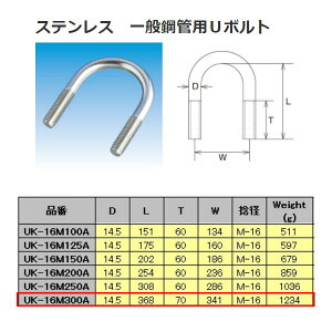 《メーカー》(株)水本機械製作所《品番》UK-8M15A《特長》●U字型金具の代表的な製品で、配管支持金具のスタンダード品です。●ステンレス製なので、錆びにくく美しいです。《用途》●配管用鋼管の固定、締め付けに使用。《仕様》●ね