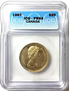 1967 CANADA $20 GOLD COIN ELIZABETH II CENTENNIAL ISSUE PR64 ICG 90% GOLD KM71商品について販売者の注意事項「同日発送を組み合わせておりますので、自信を持って...