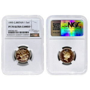 Elizabeth II 1995 Gold Proof Sovereign NGC PF70 UCAM商品について発行年:1995年1995年枚数:1枚認証番号:6947562-027グレード:PR 70製造国/地域:イギリス認証:...