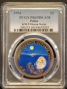 1994 Palau Independence Marine Life Protection $1 Proof PCGS PR69DCAM。流通/未流通額面:1ドル。構成:銀メッキ銅/ニッケル。発行年:1994年。グレード:PR 69...