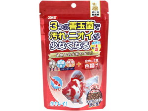 【商品説明】納豆菌に加え、新たに乳酸菌と酵母菌を配合。この3つの善玉菌の力で金魚の腸内細菌のバランスを整え、水の汚れや嫌なニオイを減らします。更に金魚の色を鮮やかにするカロチノイド配合の色揚げ用栄養フード。中粒タイプ...