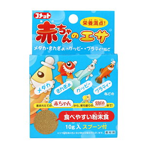メダカなどの赤ちゃん用フード、スプーン付き 本体サイズ(cm)幅7.6×奥行2.3×高さ10.8 粒の大きさ粉末 特徴生まれたての赤ちゃんから、育ち盛りの幼魚に適した栄養満点フード。 用途主食として。 効能・効果赤ちゃんが食べやすい粉...
