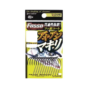 仕様表刺さり抜群のTCフッ素加工のアキアジフックです。SASAMEササメ N-213 匠技アキアジ・マキリ(フッ素コート)●品 番:N-213●カラー:フッ素コート●号 数:19●入 数:11●標準自重(mg):725.0...