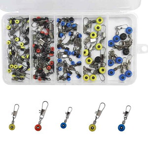 遊動スイベル シモリペット ウキ釣り 仕掛けセット 仕掛け用 海上釣堀専用 ウキスイベルスナップ 3色大中小 ケース付き 80個入スベリ抜群:このスイベルの穴内経約0.8mmで(適合peライン12号内/ナイロンライン20号内)...