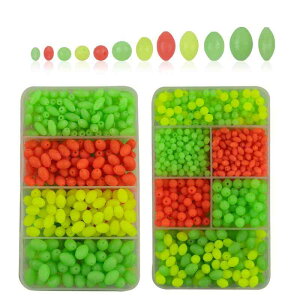 釣りビーズ シモリ玉 蛍光玉 発光玉 ハード ラウンド 5mm 仕掛け用 約1000粒 フカセシモリ 海上釣堀用 10色 内径1.5mm【実用ビーズ】:釣りビーズは仕切りで色を分けて様々なシーンに利用でき、...