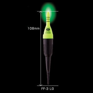 超高輝度小型電子ウキの決定版 品番:FF-3 サイズ:高さ108×最大径15mm 適合錘:大 使用電池:リチウム電池/FB-03/BR435(別売) 電池寿命:約15時間 発光部:高輝度LED(3m/m)