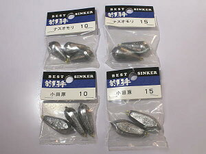 コメントフィッシング用のオモリセットです。様々な場面で使用できます。 ナスオモリ 10号x1パック 15号x1パック 小田原 10号x1パック 15号x1パック