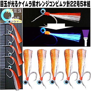 紫外線 蛍光発光 ケイムラ目玉 紫外線 蛍光発光 ケイムラ巻きそ(巻き糸) 紫外線 蛍光発光 ケイムラ2色コンビフラッシャー ムツ針 22号 太地 5本組 トリプルケイムラ発光で魚の視覚を刺激する もはやフラッシャーの領域を超えた疑似...