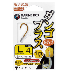 がまかつ 糸付 海上釣堀 マリンボックス ダンゴプラス■サイズ:S(8号)/M(9号)/L(10号)/LL(11号) ■ハリス:2.5,3,4,5 ■全長:1m ■入数:3組★ラセン部分にはダンゴエサ...