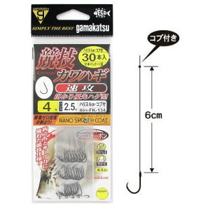 【がまかつ/Gamakatsu】船上ですぐにお使いいただける8の字コブつきの糸付鈎です。ハリスは感度と強度を兼ね備えたフロロカーボン。長さは様々な状況に対応できる6cmに設定。10本×3パックの分封で保存にも便利です。