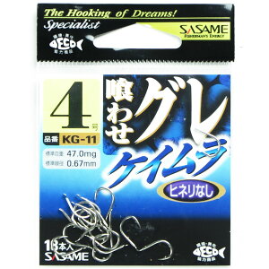 喰わせグレ(ケイムラ)KG-11■4号:18本入■5・6号:17本入■7・8号:16本入《ささめ針針》●海中の紫外線によって、鈎があやしく反射し餌の存在をアピールします。※内容量・パッケージ等の仕様は...