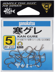 入本数:15 号数:4号 もっともオーソドックスな鈎で、磯の万能鈎として定評があります。 マダイやグレ、イサキ狙いにと多彩な魚種に。