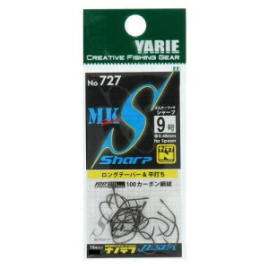 ヤリエ(Yarie) No.727 MKフック シャープ 9号 ナノテフ サイズ:9号 仕様:ナノテフ 入数:16本 ロングテーパーで優れた形状のMKフック。カーボン100の銅線を使用し、ナノテフ加工...