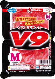 ■冷凍製品 不凍加工 ダブルパック フレッシュパック 鮮やかに赤い「くわせオキアミV9」。「グレパワーV9」などの赤い配合エサと、色で同調するくわせ専用オキアミです。マルキュー独自のハード加工を施し、エサ持ちが抜群...