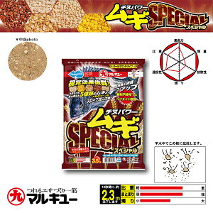 色や大きさ、形の違う5種類のムギと大粒コーンが異なる速さで沈み、視覚へ強烈にアピール。集魚・摂餌力の高い"新MP酵母"と、さなぎエキスを濃縮した「チヌにこれだ!!」も配合、魚を素早く寄せて長く留めます。足元から沖目、中層から底