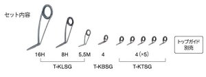 エギングロッドやメバルロッドなどライトなソルトルアーロッドに最適なチタンSiCガイドセットです。 ◆セット内容 T-KTSG4/5個 T-KBSG4/1個 T-KLSG5.5M/1個 T-KLSG8H/1個 T-KLSG16H/1個 ...