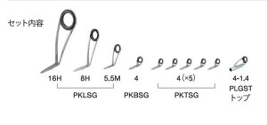 エギングロッドに最適なステンレスSiCガイドセットです。◆セット内容PLGST4-1.4/1個PKTSG4/5個PKBSG4/1個PKLSG5.5M/1個PKLSG8H/1個PKLSG16H/1個