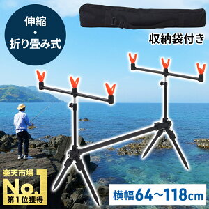 釣り竿ホルダー ■色んな竿に対応 横幅、高さ、脚、の3か所のサイズ調整ができるから 短竿から長竿まで対応出来て使い勝手抜群! ■軽量で折り畳める 軽くて折りたためるから持ち運びが簡単! ■4脚スタンド式 脚が4本あるため、地面で安