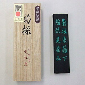 【鈴鹿墨】菜種油煙 - 菊採東籬下悠然見南山 1丁型(細字、仮名用)伝統工芸士 伊藤亀堂作艶のある漆黒が特徴で特に細字用に適し、仮名にも使用できる菜種油煙墨。