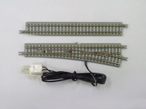 一般的な、ポイントレールと同様に2線式のワイヤーが付いており、電流の正逆を切り替える事により、方向を切り替える。●電動作動。手動も可。●電磁作動部はネオジウムマグネットを使った新規設計で、全て道床内に収納済み。●110mm カ