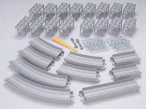男の子向き対象年齢 : 8歳から高架複線基本セットより2回り大きい緩いカーブの大円の高架複線スラブを楽しめるセット。2セット購入により、大円の複々線を組むこともできます。