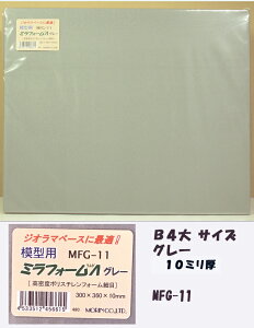 *厚さ10ミリの高密度ポリスチレンフォーム(細目)ジオラマベースに最適です。 サイズ:(300×360×厚さ10mm)・1枚 カラー:グレー。グレー色なので舗装道路・滑走路・ビルの壁・コンクリート橋等の表現に使いやすい。*模型用ミラフォーム