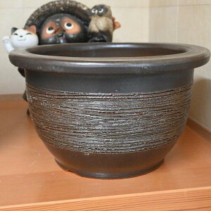 商品について 品名 信楽焼 植木鉢 陶器 手びねり(ロクロ引き) 黒窯変 中深ソリ 10号 サナサービス 品番 用途 山野草・多肉植物・ サボテン・盆栽 等 基本サイズ(約) 外径29.7cm 高さ15.2cm...