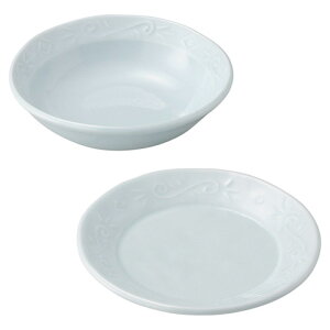 凜水 唐草紋皿鉢揃凜水 唐草紋皿鉢揃●材質:陶磁器●セット内容:ボール(径16.6×4.4cm)・皿(径16.5×2cm)×各1●本体重量:約260g●生産国:JPN天然石(タイガーアイ)1個おまけつ...