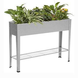 大型 深型 スタンド ホームベジトラグ ウォールハガー 長方形 鉢スタンド フラワースタンド 花台 植木台 園芸ラック フラワーポット 鉢 植木鉢 木製 野菜 花 室内 屋外 (グレー, 100x27x80)頑丈な構造:...