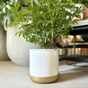 ゴールドのソーサーがアクセントのシンプルなフォルムの鉢カバー。 シックなカラーでグリーンがよく映えます。 鉢カバーだけでなく、小物入れとしても。 ポットとソーサーが取り外し可能なので別々でもお使いいただけます...