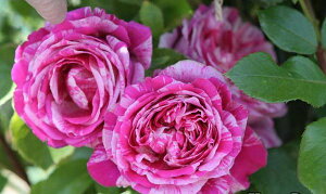 Framboise Vanille 花色: ローズピンクと淡いピンクの絞り 香り:★☆☆ 四季咲き 花径: 8〜9 cm 鮮緋地(ピンク)にパープリッシュレッドのストライプが入る、花保ちがとても良いつるバラです。1茎に1〜数輪を株元か...