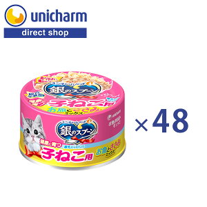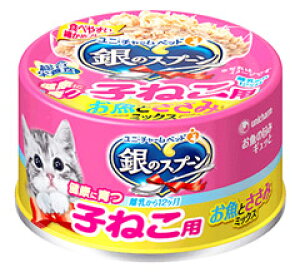 ざいます。予めご了承ください。 名 称 銀のスプーン 缶 健康に育つ子ねこ用 お魚とささみミックス 内容量 70g 特 徴 ◆ユニ・チャームペット「銀のスプーン 缶 健康