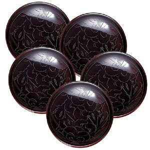 サイズ:φ15.2xH2.2cm 5枚組 材質:木製 漆手塗り 沈金 日本製 お菓子の受け皿として多用される銘々皿ですが、もちろん料理の取り皿としても おせち料理には欠かせませんし、和洋を問わずドリンクタイムのおつまみを盛るのも楽し