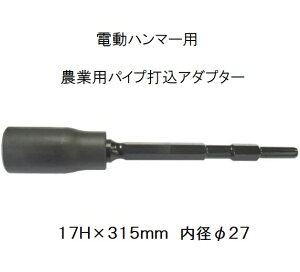 ◎電動ハンマーに装着し、農業用パイプや異形鉄筋を打ち込むためのアダプターです。 ◎ビニールハウスに使用する農業用パイプφ19.1、φ22.2、φ25.4に対応します。 ◎異形鉄筋D19、D22も打ち込めます。 ◎ハンマーで打ち込むより...