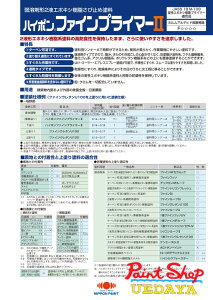 製品仕様 商品名 ハイポンファインプライマー2 特徴 1:ハイポンファインプライマー2はターペン可溶です。2:ハイポンファインプライマー2は塗り替え適性に優れています。3:ハイポンファインプライマー2は作業性が抜群です。4:ハイポンファイ
