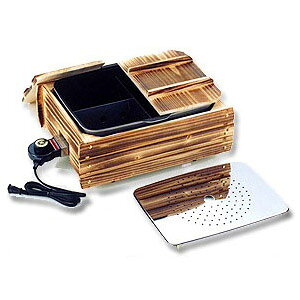 サイズ:幅×奥行×高さ387×290×H180mm材質:本体・蓋:焼杉風木枠 内鍋:アルミ鋳造 目皿:18-0ステンレス 仕切り:アルミ生産国:日本