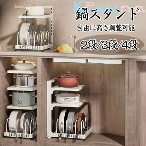 キッチン収納 鍋ラック 2段 ブラック 3段 4段 高さ調整可能 多機能 シンク下収納 鍋置き棚 調味料ラック スパイスラック・カテゴリ: 鍋ラック