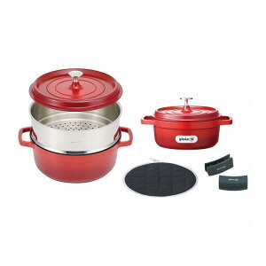 均一加熱・焦げにくい);蒸し器(天然素材製)と組み合わせでカニ・エビ・野菜等蒸し料理可能(水分・栄養保留・ふっくら食感);オーブン対応モデルでグラタン・オーブン焼きに活用,一鍋で「煮る→蒸す→焼く」対応...