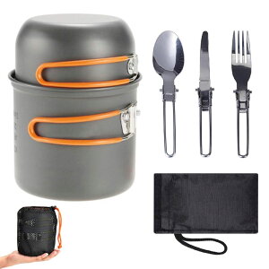 【セット内容】アルミニウム鍋*2、収納袋*2、ステンレスのスプーン*1、ステンレスのフォーク*1、ステンレスのナイフ*1、使用人数:1〜2名様をお勧めます。重量:約230g【安全の素材】鍋は安全無毒の高品質アルミ材料を採用して...