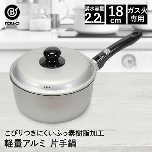 【片手なべ】■商品サイズ18cm■満水容量約2L■表面加工(内側/外側)ふっ素樹脂塗膜加工/(底面を除く)焼付け塗装■材質本体:アルミニウム合金ハンドル:アルミニウム合金、フェノール樹脂(耐熱温度140℃)はり底:ステンレス鋼(