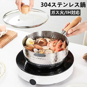 【材質】本体(304ステンレス)、取っ手(木)。ガスコンロ、IHヒーター対応します。 【打ち出し加工】表面に凹凸が打ち出されているので、変形しにくく耐久性に優れています。熱を伝えやすく、調理にムラが出にくい。お湯を沸かしたり