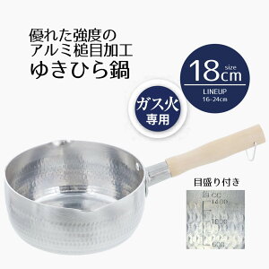 雪平鍋 日本製 IH対応 16cm / 18cm / 20cm 「京都活具 ゆきひら鍋」は、独特の打ち出し模様とオーク材の組合せが素朴で美しい、アルミ製のお鍋です。アルミ鍋はステンレスや鉄に比べて熱伝導率が高く...
