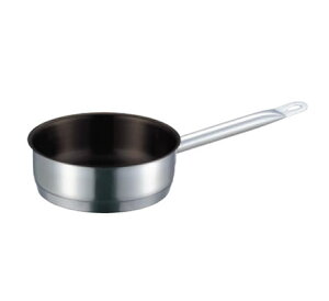 KO 18-0ソースパン 22cm。規格(容量) : [22cm(3.8L)]。内径 深さ t=底板厚 : φ220×H100mm t=0.8mm。材質 : 18-0ステンレス鋼。