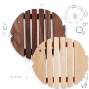・形状: 円形・素材: 木・カラー展開: 黒胡桃木魚形ランチョンマット.ビーチ材魚形ランチョンマット