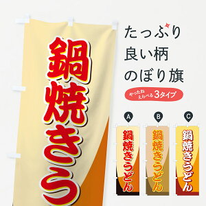 雑貨|販促グッズ|既製品のぼり商品名「のぼり旗 鍋焼きうどん 既製品のぼり 高品質デザイン【メール便可】」名入れのぼり旗も扱っている姉妹店「はたはた旗」製作の既製デザインのぼり旗です。 見た目のインパクトに加え...