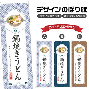 グッズプロ製造(ABCのデザインが選べるのぼり旗)でご相談ください。 内容 : 鍋焼きうどん サイズ : 一般サイズW60 × H180cm 素材 : ポンジ 補強 :...